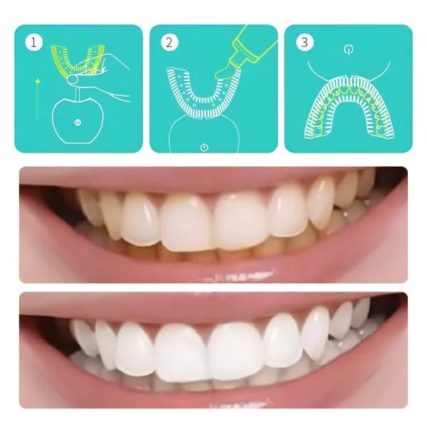 Dank der einzigartigen U-Form erreicht unsere Zahnbürste alle Ecken des Mundes. Die leistungsstarke Sonic-Technologie entfernt hartnäckige Flecken und lässt Ihre Zähne weißer aussehen.