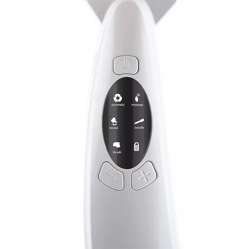 Dieser Massager kombiniert die Kraft von EMS und blauer sowie roter Lichttherapie. Er stimuliert sanft tiefere Hautschichten, verbessert den Tonus und reduziert gleichzeitig die Erschlaffung.