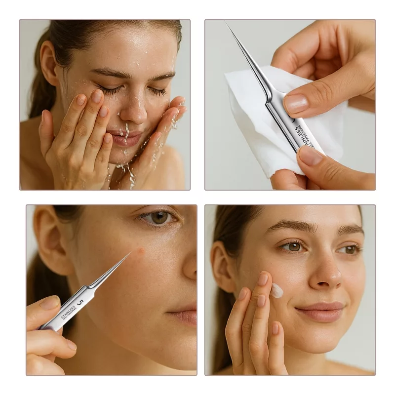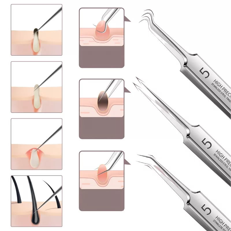 Unsere Mitesserpinzetten dringen tief ein, um Unreinheiten zu entfernen und den Teint der Haut zu verbessern. Sie helfen zukünftige Ausbrüche zu verhindern, indem sie die Poren frei von Ablagerungen halten. Dieses Kit ist eine kluge Ergänzung jeder Hautpflege-Routine.